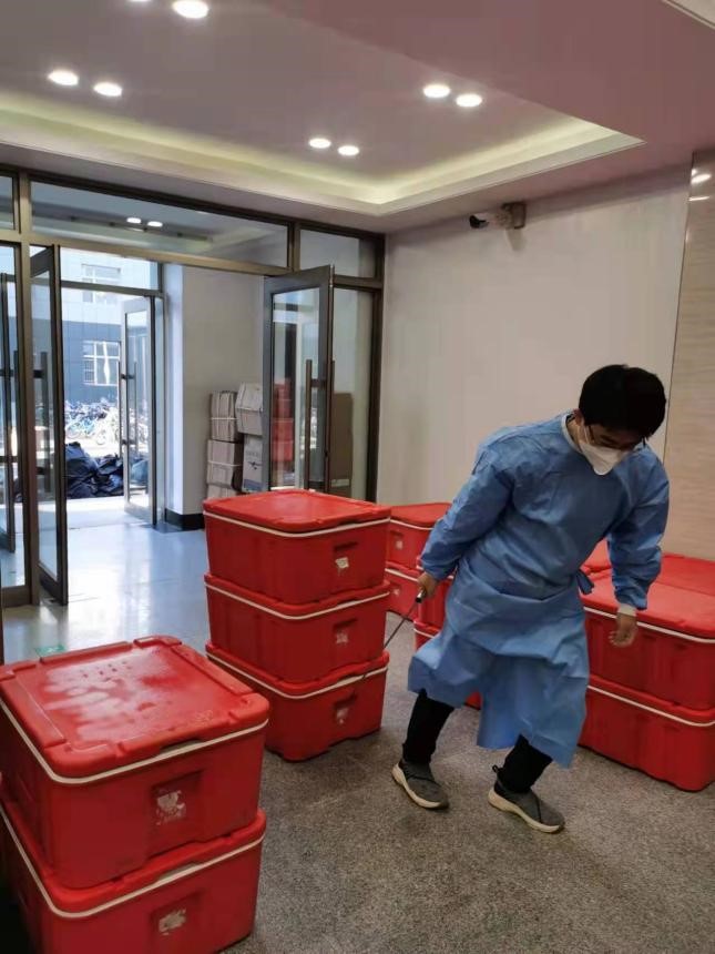 樊鸿刚老师负责管理北苑四公寓西区约2500名研究生。每日负责组织三餐和饮用水发放,防疫物资和生活物资的接收和发放,给同学们送药,组织各学院、各楼层的志愿者、党员学生开展志愿服务工作,统计和上报各类信息,处理楼内突发事件等等。