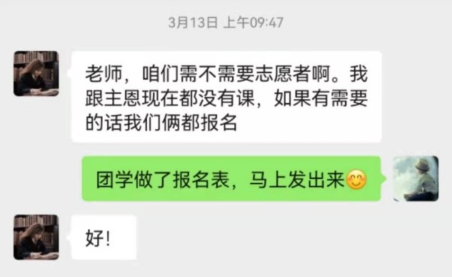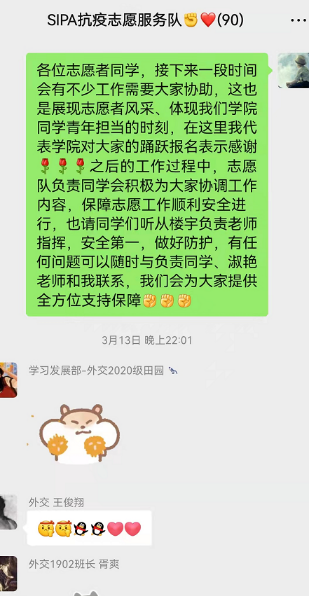 在疫情爆发后第一时间组建了抗疫志愿服务队,近八成在校本科生、约90名同学申请加入志愿者队伍,共同抗击疫情, 服务同学。