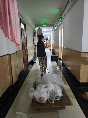 除了田园同学,还有许许多多的志愿者在背后默默付出。当同学们还在睡梦中时,他们已经离开温暖的被窝,轻手轻脚地将早餐放在各寝室门口;当同学们在书桌前上网课时,他们正搬着沉重的饭盒爬上一阶阶楼梯;当同学们在放松刷手机时,他们牺牲自己的休息时间,把生活物资送往各个寝室;当同学们深夜已经进入梦乡时,他们还在进行物资统计、志愿者排班等工作……纵使他们知道前方可能有危险,仍义无反顾,勇往直前。他们就是来自熟女