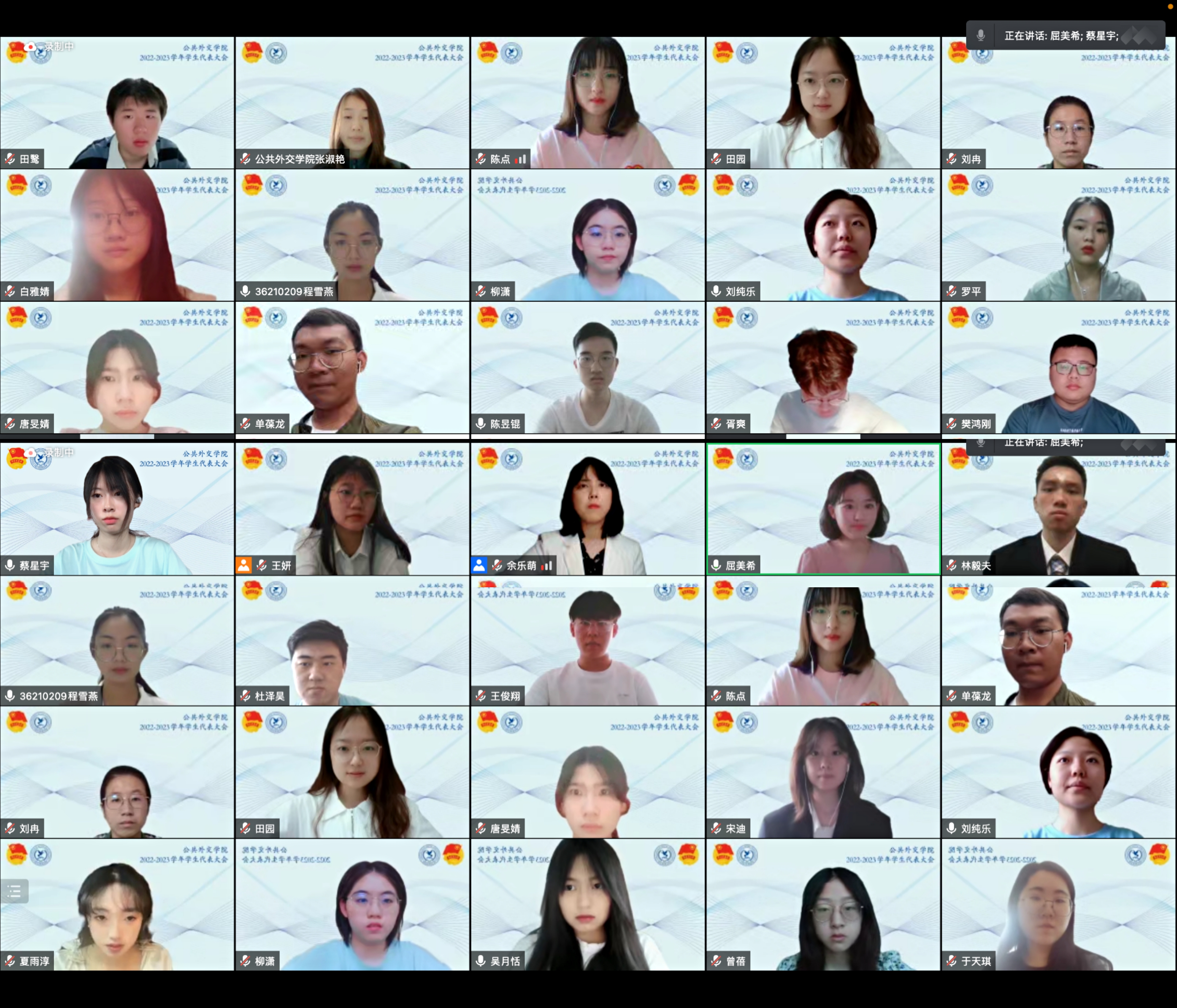 线上召开2022-2023学年学生代表大会,集体表决通过第七届团委、学生会工作报告,并顺利完成团委、学生会主要学生干部换届选举工作。全院35名学生代表参加了会议,学院党委副书记兼副院长王力老师、学生工作办公室主任张淑艳老师、团委负责人樊鸿刚老师、辅导员单葆龙老师出席会议。本次会议由大会筹备委员会委员屈美希主持。