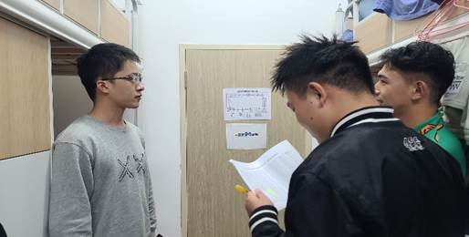 在检查宿舍的过程中,于晴老师和同学们交流了近期的生活状态、新学期规划和疫情防控等情况,并叮嘱大家严禁使用违规电器,避免对人身和财产安全造成隐患。此外,在与毕业年级同学的交谈过程中,于晴老师就学习、生活和毕业发展等问题与大家进行了深入交流,并嘱咐大家要遵守学校疫情防控规定,及时参与核酸检测。院研会学生代表检查了各个寝室的用电、用水安全及卫生情况,并与大家交流了近期生活和学习中的困惑,加强对新生的生活需求及心理状态的了解。