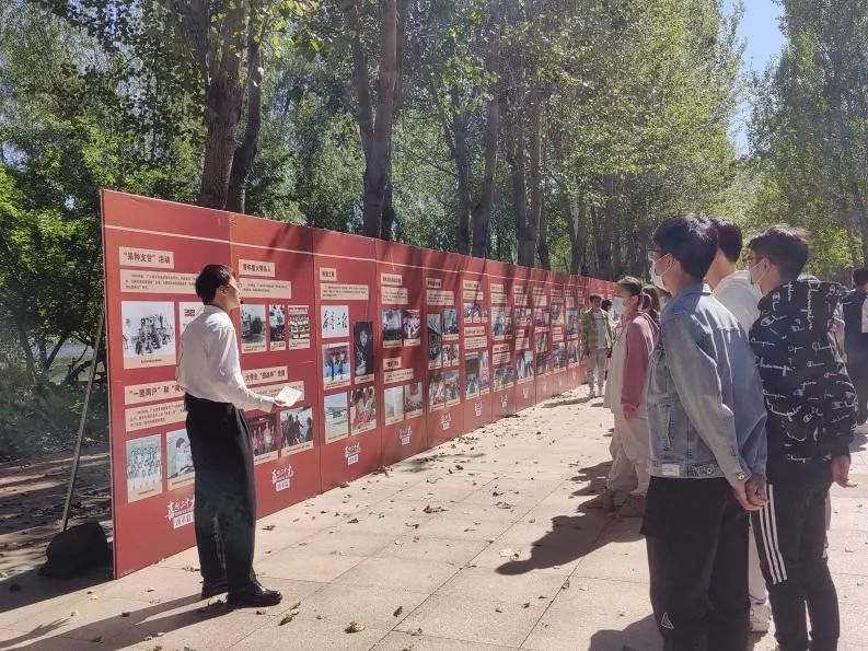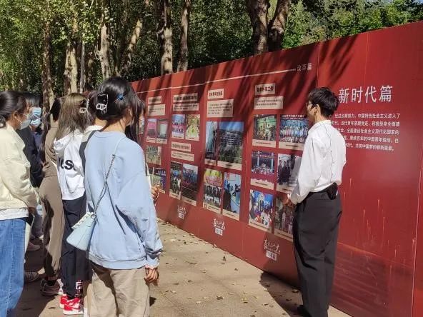 在宋治平体育馆东侧长廊组织同学们参观了“喜迎二十大、传承百年志、奋进新征程”主题巡展。作为新生的第一堂团课,熟女