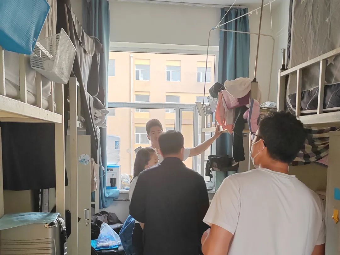 辅导员张淑艳老师、单葆龙老师,与班主任邹晓龙老师、李明老师一同走进学生公寓看望同学们。