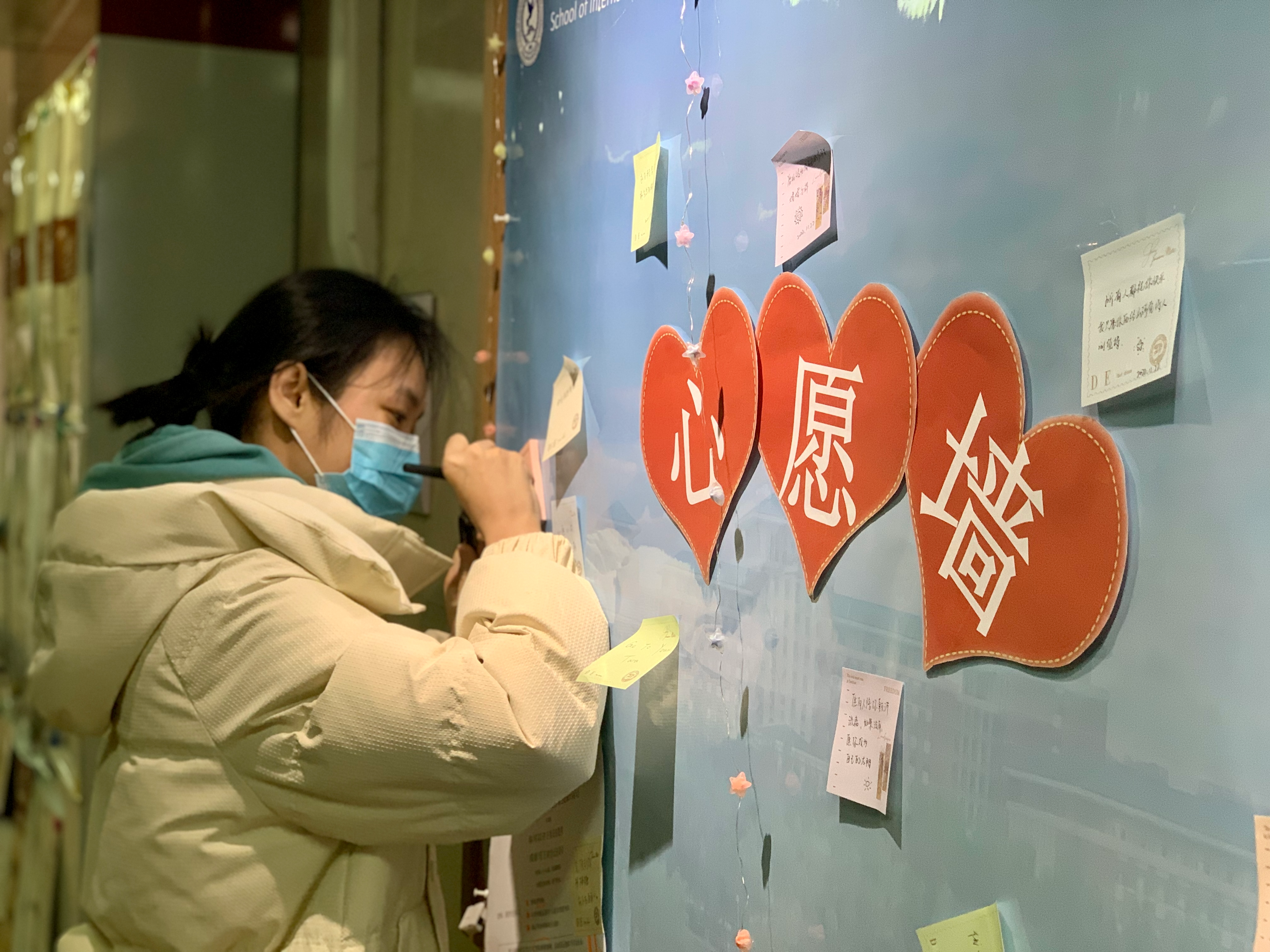 、国家发展与安全研究院于吕振羽楼二楼开展了“心愿心语,来日可期”心愿墙主题成长活动。