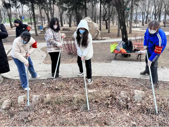 在清扫过程中,大风刮过加大了任务难度,但大家分工合作,使用铁耙和扫把分别拢与扫,配合默契,效果良好。时间不知不觉地过去,在同学们的辛勤劳动与默契配合下,小溪冰面粘连的落叶已被归拢到河两岸,堆积成了一个个小丘。河道焕然一新,不再有落叶的遮蔽,静静等待着冰雪消融,溪水流动。同学们纷纷表示这次志愿服务活动意义非凡,给他们带来了许多收获,感触颇多。本次活动取得圆满结束。