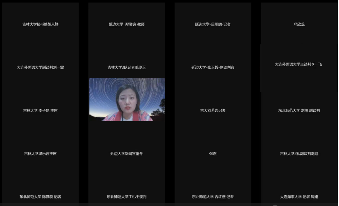 吉林大学1队的参赛选手分别来自外国语学院,法学院,行政学院,新闻传播学院和白求恩第一临床医学院,在此次比赛中抽中的国家立场为中国。