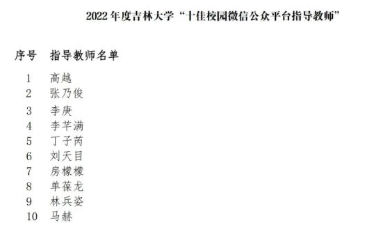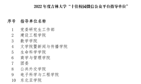 荣获2022 年度吉林大学“十佳校园微信公众平台指导单位”