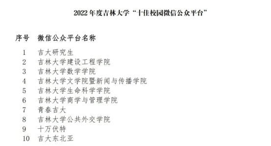 ”荣获2022 年度吉林大学“十佳校园微信公众平台”。