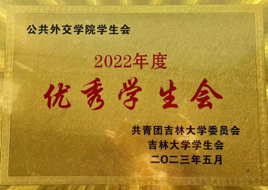 学生会在校团委、校学生会组织开展的2022年度吉林大学“优秀学生会”的评选工作中荣获“优秀学生会”称号。