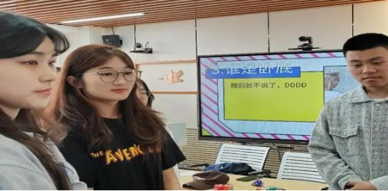 接下来,同学们通过破冰必备小游戏--击鼓传花,选出几位幸运观众与新同学进行了“抢数字报人名”和“谁是卧底”游戏。大家随着音乐的鼓点快速传递着手中的物品,玩乐间彼此距离不断拉近。此外,贴心的班委们还为大家准备了小零食,让大家在玩耍之余还能享受美食盛宴。