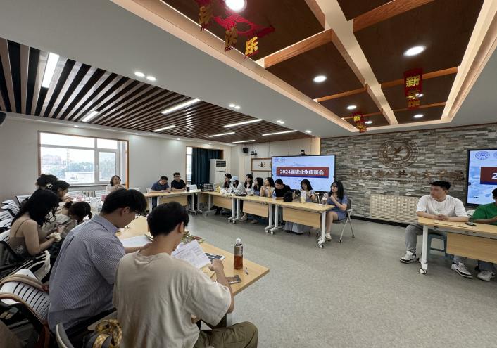 举办了“倾听心声,共绘未来”2024届本科毕业生座谈会,学院党委书记杨民老师、党委副书记兼副院长王力老师与即将踏上人生新旅程的全体毕业生共聚一堂,倾听同学们分享大学生活的点滴感悟,共同探讨学院教育教学的改进方向,为学院未来发展注入新的思考。座谈会由2024届辅导员张淑艳老师主持。