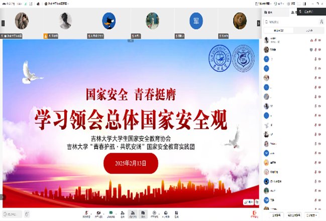 寒假期间,在吉林大学大学生国家安全教育协会的组织下,来自法学、政治学、国家安全学等不同学科背景的22名研究生和本科生同学共同组建了“青春护航·共筑安澜”国家安全教育实践团。实践团队将理论学习、主题宣传和社会调研相结合,开展了一系列形式多样、内容丰富的社会实践活动。