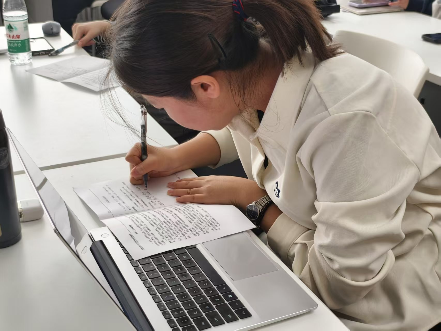 讲解结束后,学习委员向每位同学发放了《诚信考试承诺书》。同学们郑重阅读承诺内容,并逐一签署。一笔一划,写下的是对规则的敬畏;一字一句,许下的是对诚信的坚守。